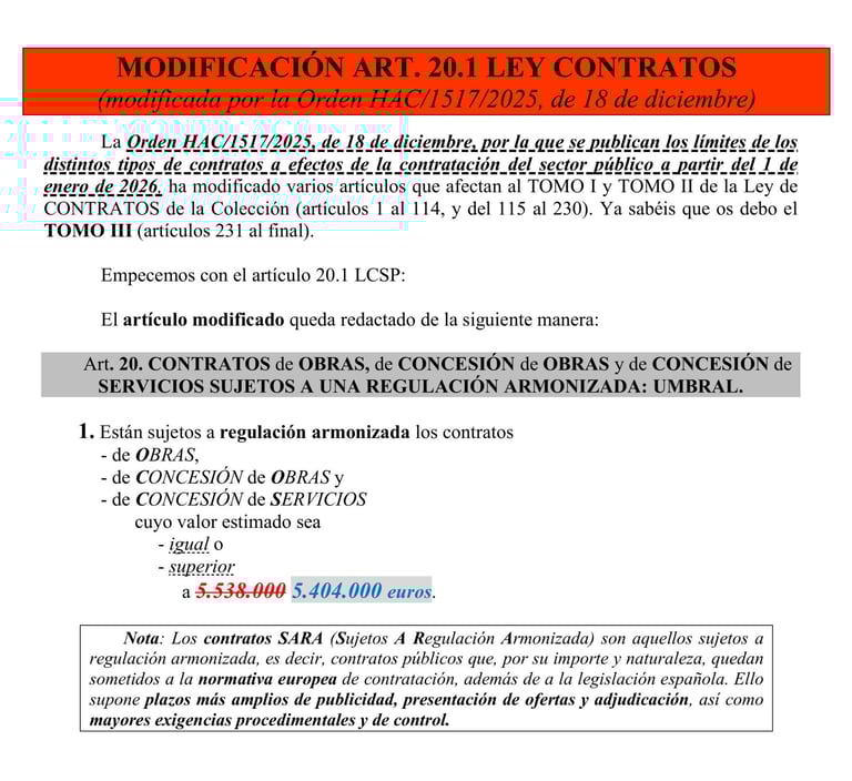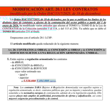 Actualizaciones Ley Contratos Sector Público ENERO 2026: